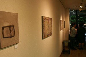 ![]() ギャラリーの向かい側はホテル ![]() ギャラリーの掲示板 ![]() 芳名帳・受付 ![]() 二村氏の作品が並ぶ ちょっとおしゃべりなどをしながら演奏。後ろには大きな作品。 ![]() 演奏者も、お客さんも、二村氏の作品に囲まれて。ふしぎな心地よい空間。
