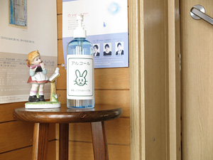 レッスン室入り口 消毒用アルコール