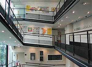 そのひとつになにやら人だかりがしているので見に行ってみると、おもしろいモダンな作品がたくさん展示してあって、たくさんの人がシャンパンを飲みながら談笑している。