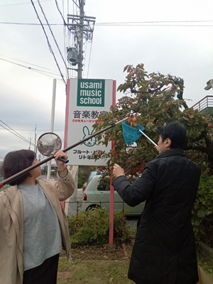 うちの庭には、なぜか柿の木がある 柿狩り中 きょうの収穫